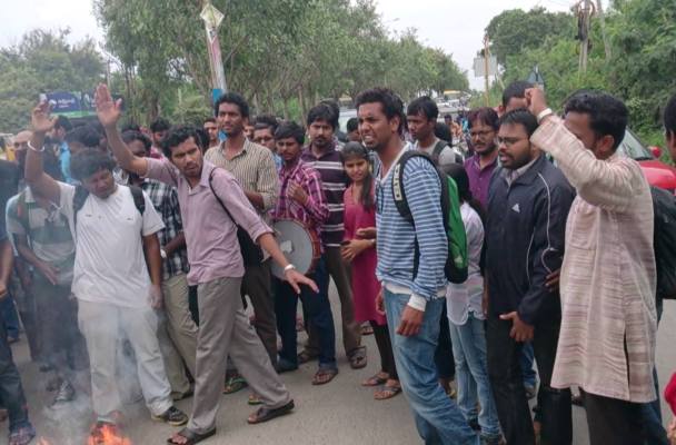 A video of UoH students protesting against the TV9 shared on Facebook: