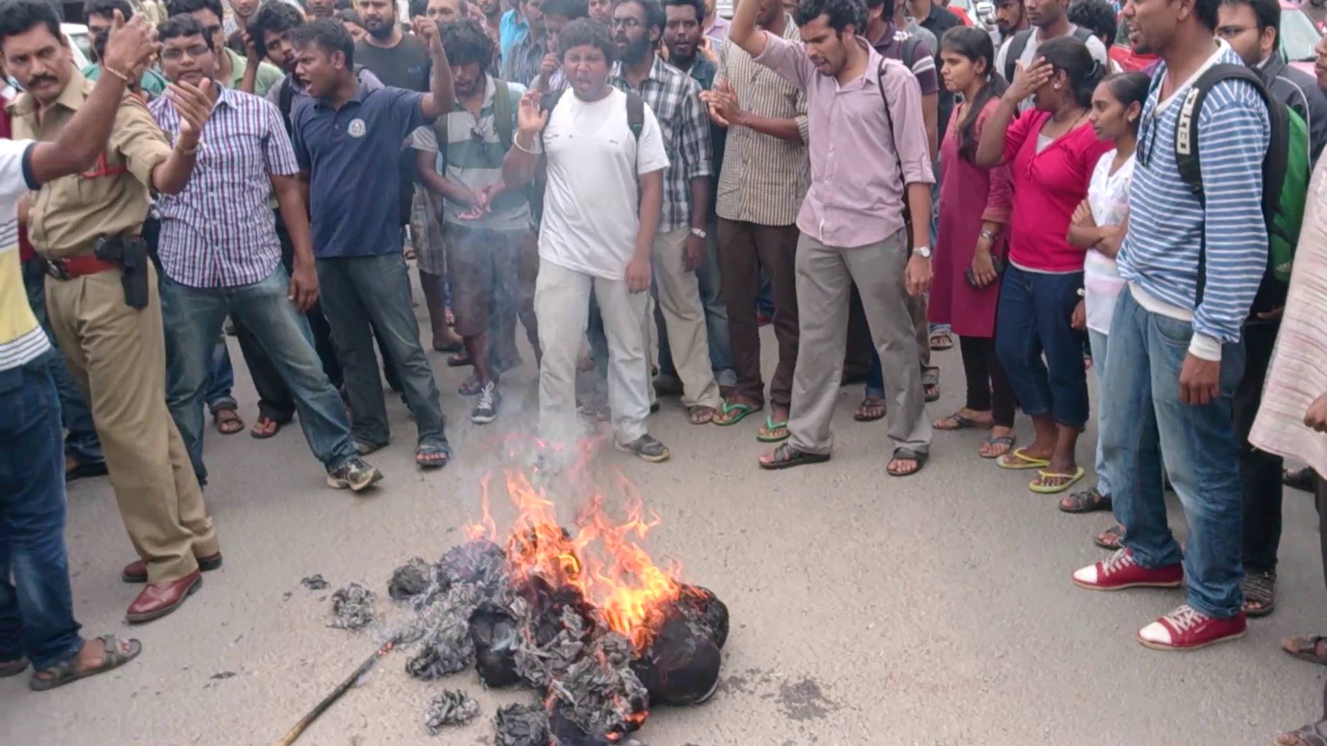 After watching the report, the UoH campus community took it seriously. Students responded in social media about the misrepresentation of campus life. False allegations like portraying students as drug and sex addicts were seen as moral policing. Further, it led to a larger debate when the report suggested that the non-locals were damaging ‘culture’ here. The UoH fraternity became more concerned about the damage of the reputation of the university by this fabricated report. The UoH Student’s Union called for a protest and effigies of TV9 were burnt. Several other student organizations protested and collected signatures against TV9. Few people started an online petition with change.org. The issue was also taken to the UoH administration which promised to go to the court of law against it. As the students disliked the video on youtube and reported it as spam, the video got removed later on.