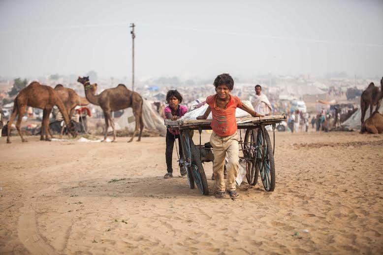 While some of the children travel with the villagers all round the year hopping from one fair to another, the others live in the neighboring slum areas. These kids cannot afford to go to school but they are quite happy doing what they do. When they are not hassling tourists, the kids are often seen collecting camel or cow dung, which is dried and later sold to herders and villagers as fuel.