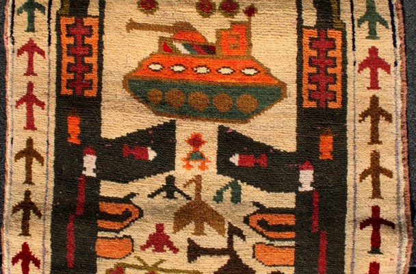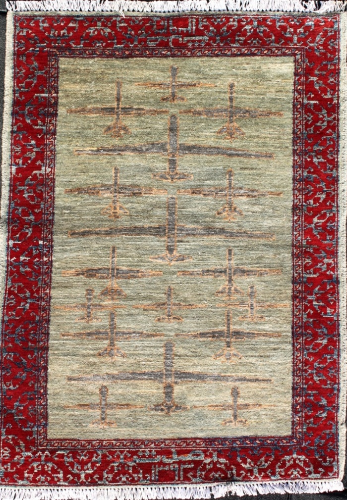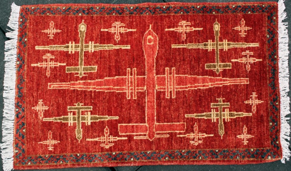 Recently, David Conrad of the Public Radio International (PRI) reported that the traditional rugs hand-woven in Pakistan, mostly by refugee women, have drones featured on them. Kevin Sudeith, who had been collecting war-rugs and selling them through his website, spoke to PRI about this new phenomenon. While the old war rugs featured images of helicopters, tanks, rifles, and grenades, drone is a new entrant. There are three rugs so far, which have hand-woven images of drones.