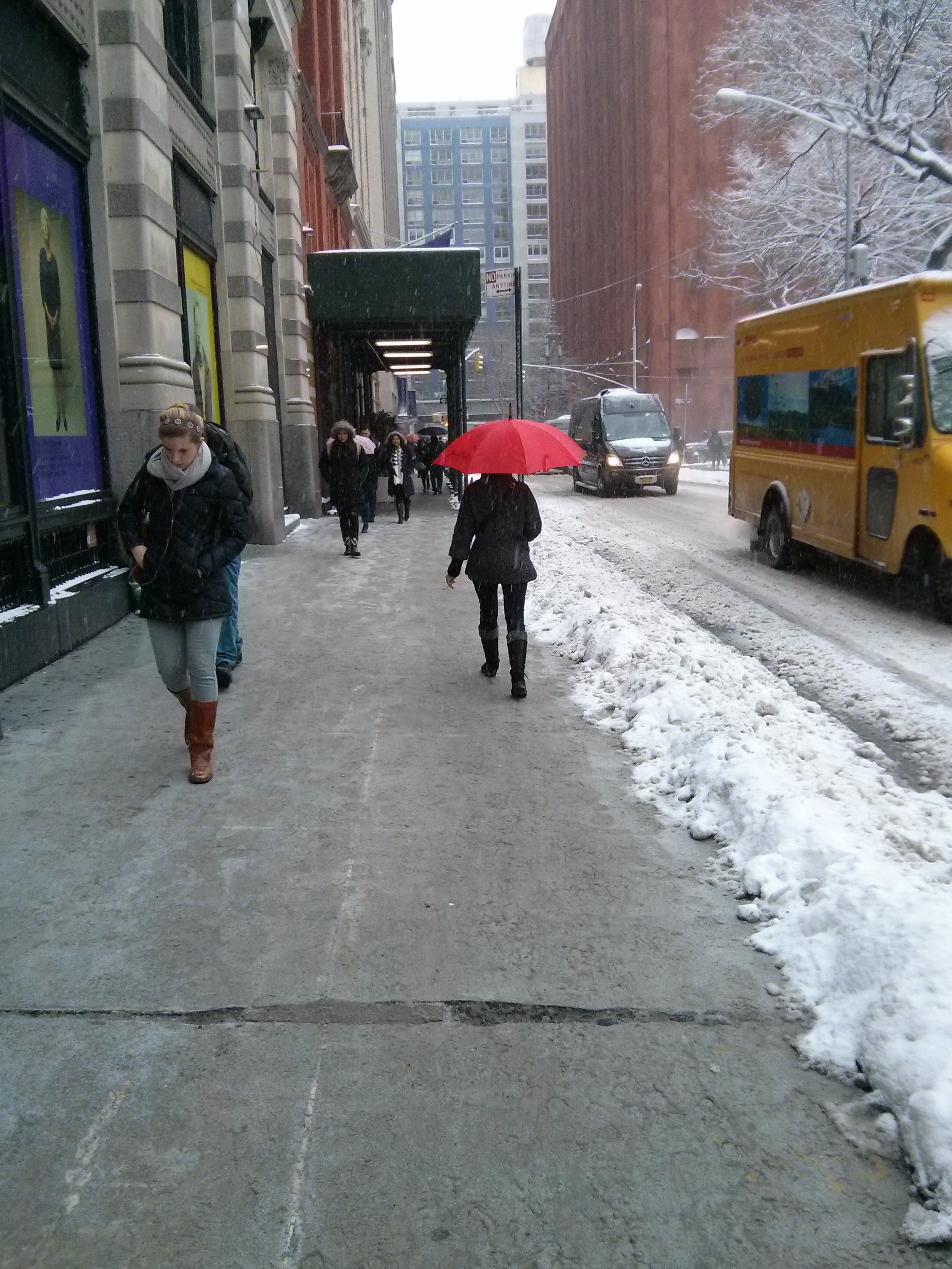 I got to work and tried to settle down. But the red umbrella had already set my heart on fire. Like a man possessed, for the rest of the day, between smoke breaks at work, I chased men and women with colorful umbrellas. I trailed them, followed them, and stalked them. In the process, I realized how fast men and women walk when it snows, without realizing the beauty of a snowy day.