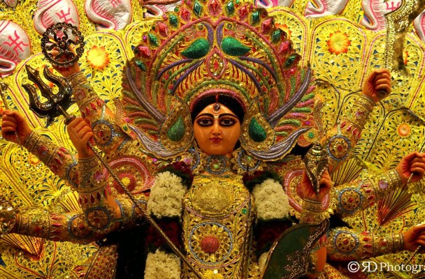 The rage of the entire night faintly pulls a paintbrush over the distant horizon as the third eye of Ma Durga.
